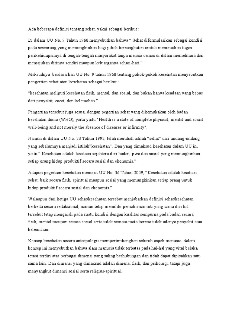 Pengertian Kesehatan Menurut Uu No 36 Tahun 2009