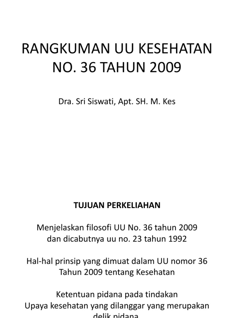 Undang-undang no 36 tahun 2009 tentang kesehatan - ppt download