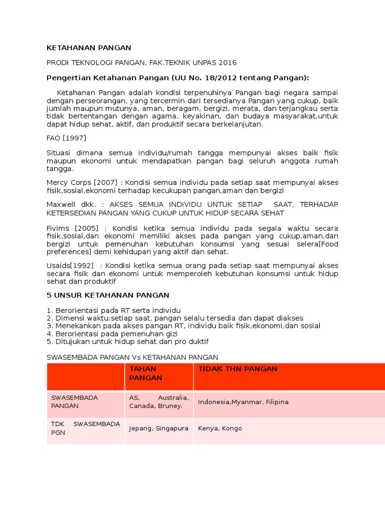 Pengertian Ketahanan Pangan Menurut Uu No 18 Tahun 2012