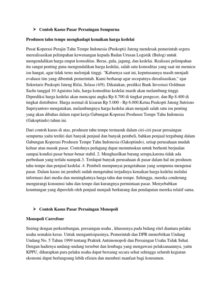 Contoh Kasus Pasar Persaingan Sempurna