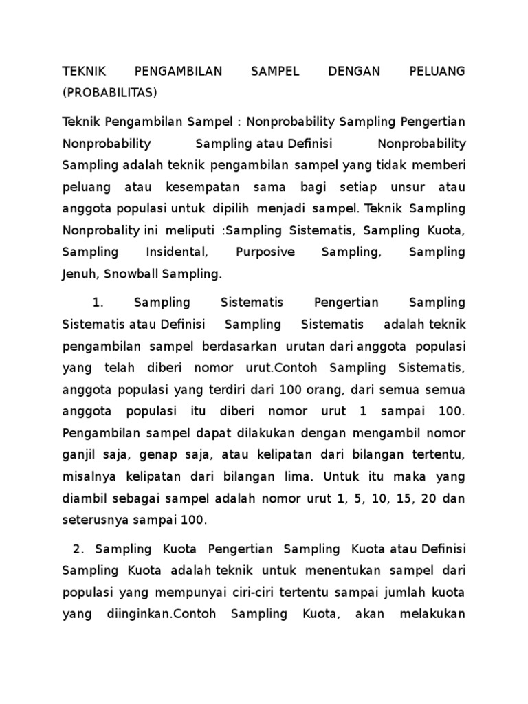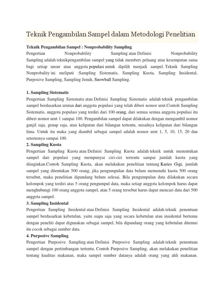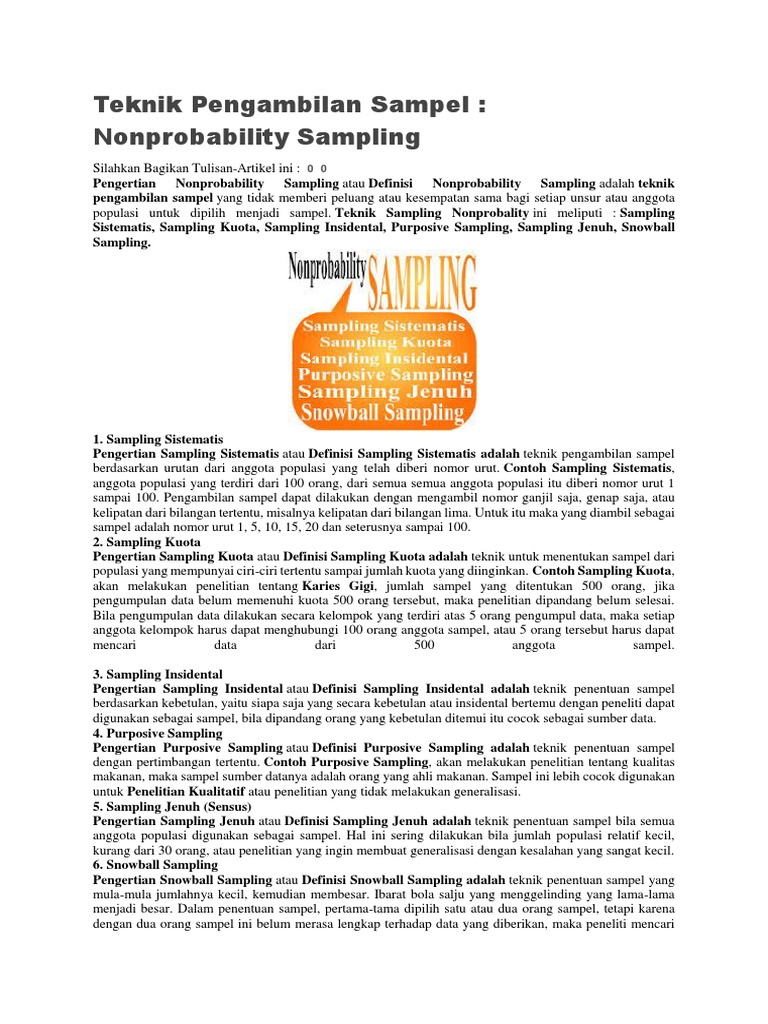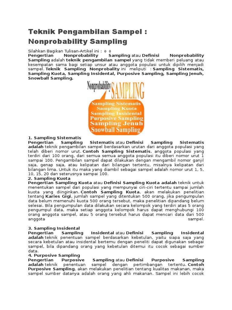 Teknik Pengambilan Sampel: Nonprobability Sampling Pengertian …