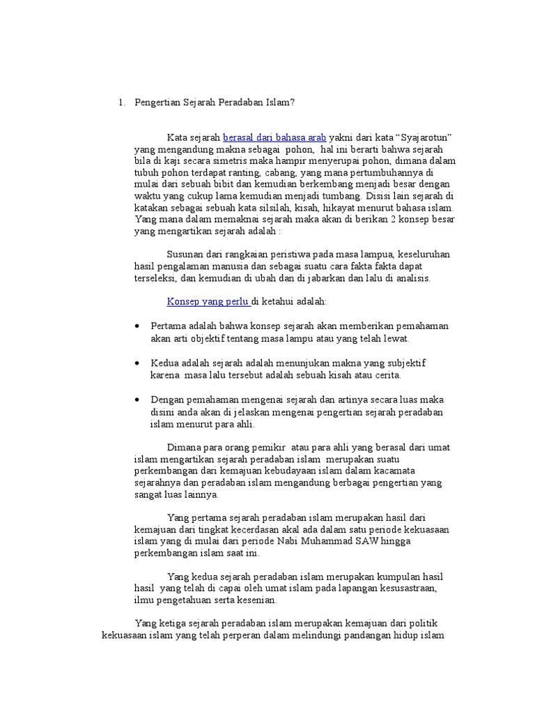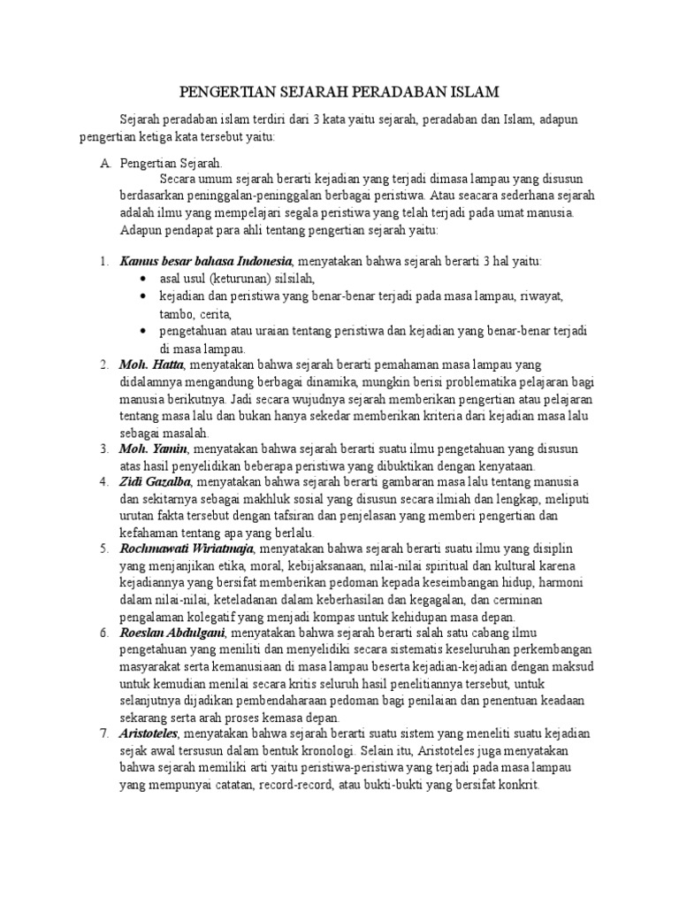 DOC) PENGERTIAN SEJARAH PERADABAN ISLAM | Animator Thobor …