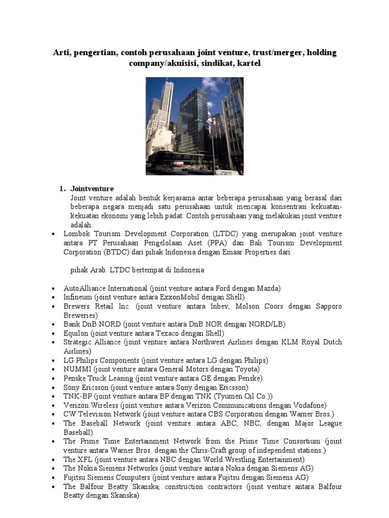Perencanaan Bisnis dan Contohnya | Joint Venture, Trust, Sindikat …