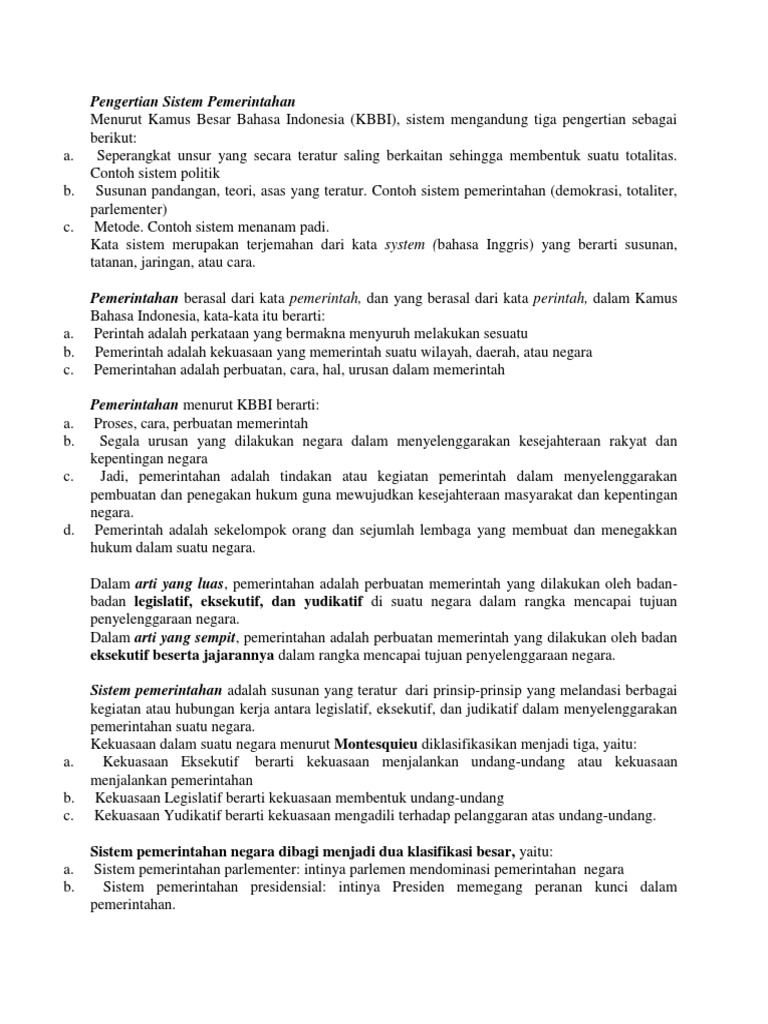 PDF) BAB II TINJAUAN UMUM SISTEM PEMERINTAHAN | Hendra Irawan …