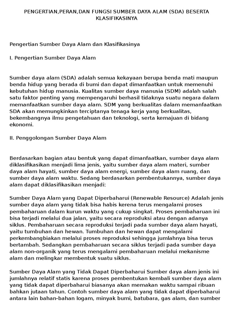 Pengertian Sumber Daya Alam Dan Klasifikasinya