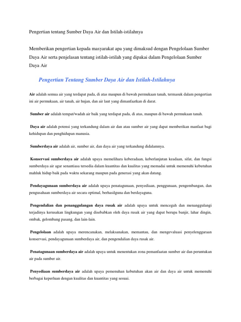 DOC) PENGERTIAN SUMBER DAYA ALAM AIR | INDRA WAHYUDI - Academia.edu
