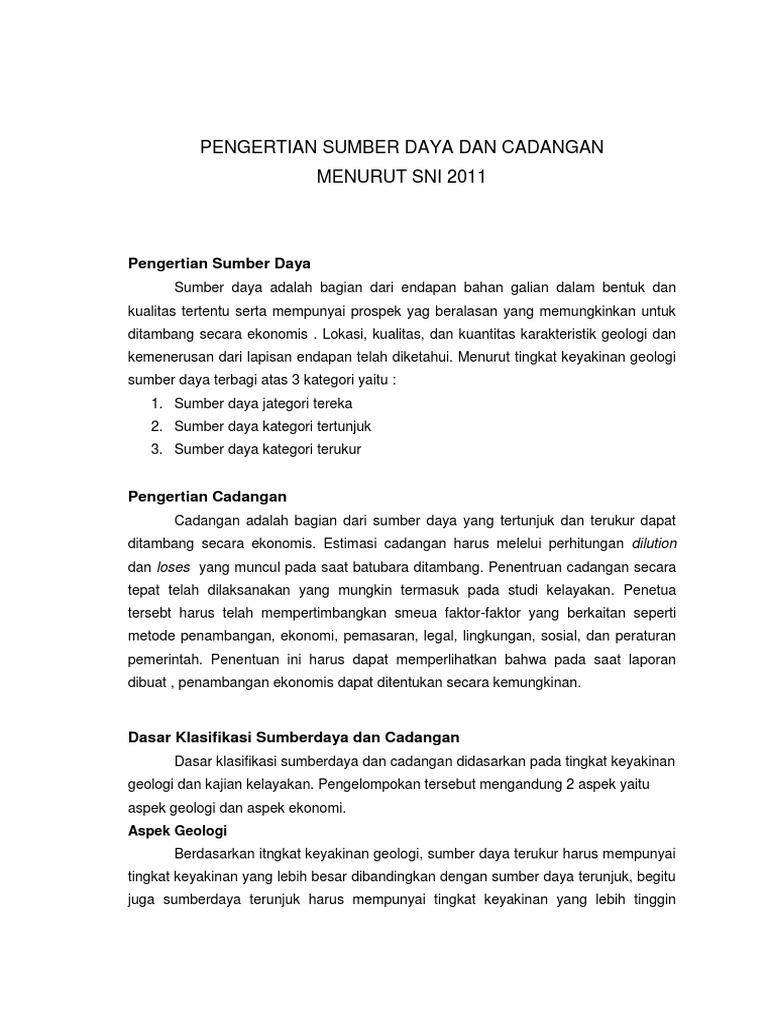 Pengertian Sumber Daya Dan Cadangan