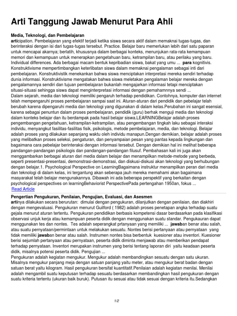 Pengertian Tugas Dan Tanggung Jawab Menurut Para Ahli