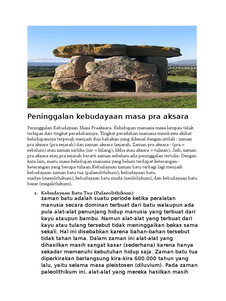 DOC) Zaman Pra aksara peninggalan kebudayaan | pasyah vegananda …