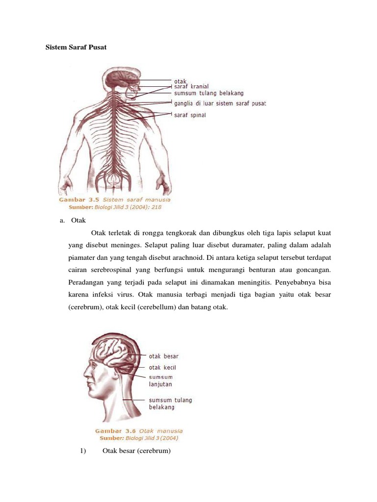 Sistem Saraf Pusat Terdiri Atas Otak Dan Sumsum Tulang Belakang …