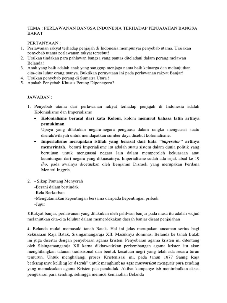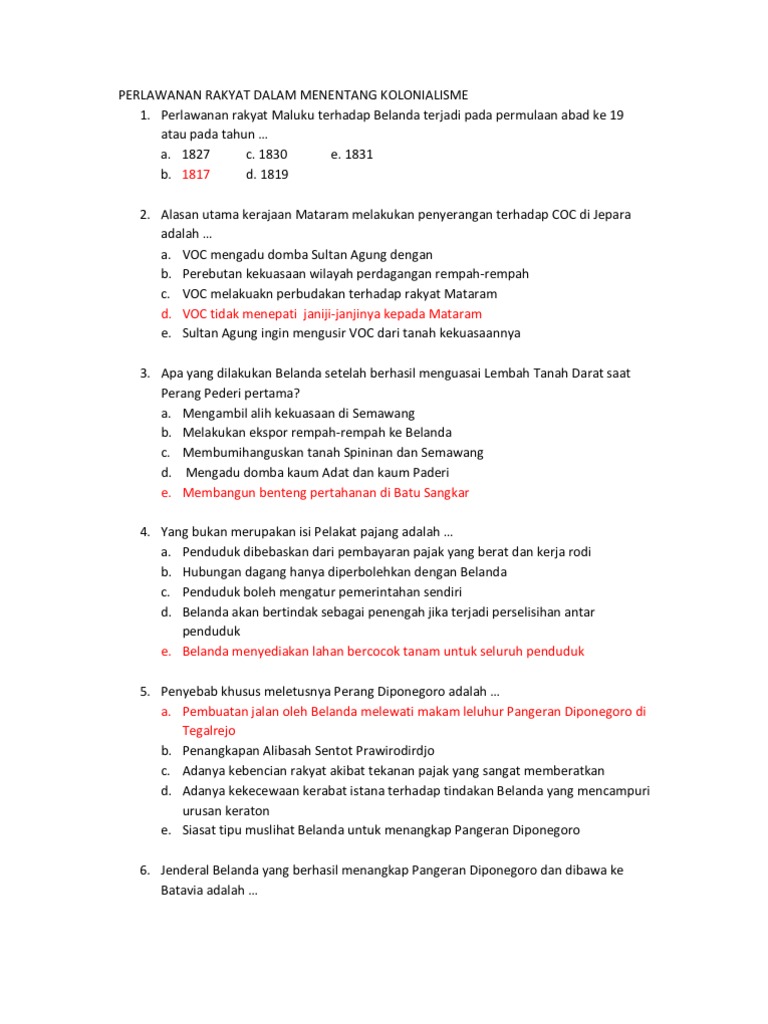 Soal UAS Sejarah Indonesia: Perlawanan terhadap Kolonialisme …