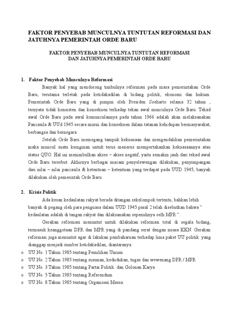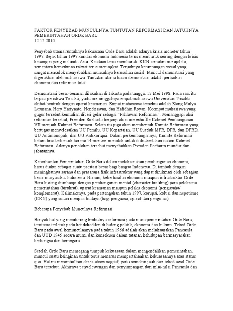 Bagaimana penyebab terjadinya reformasi? - Politik & Pemerintahan …