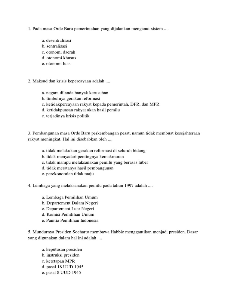 Soal Politik Ekonomi Orde Baru Dan Reformasi