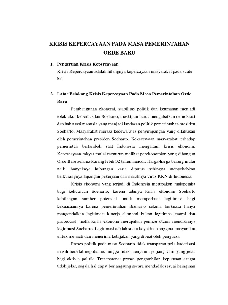 KRISIS KEPERCAYAAN ORBA