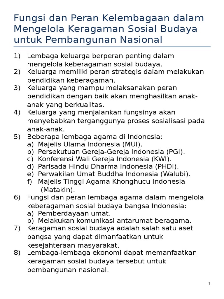 Fungsi dan peran keragaman sosial budaya dalam pembangunan nasional