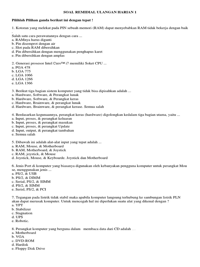 Soal Remidial Ulangan Harian 1