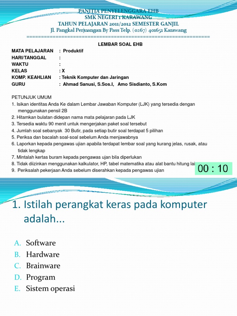 soal tkj mm kelas x sabtu 7 juni 2014