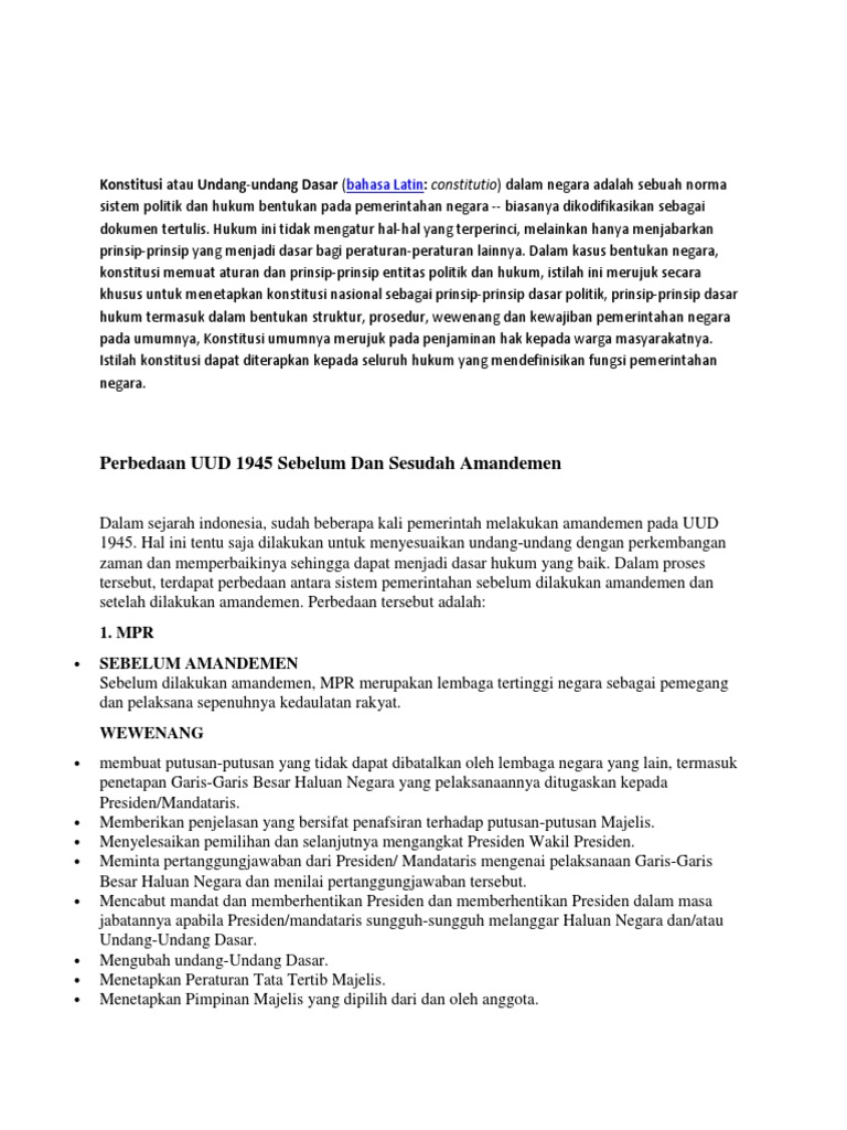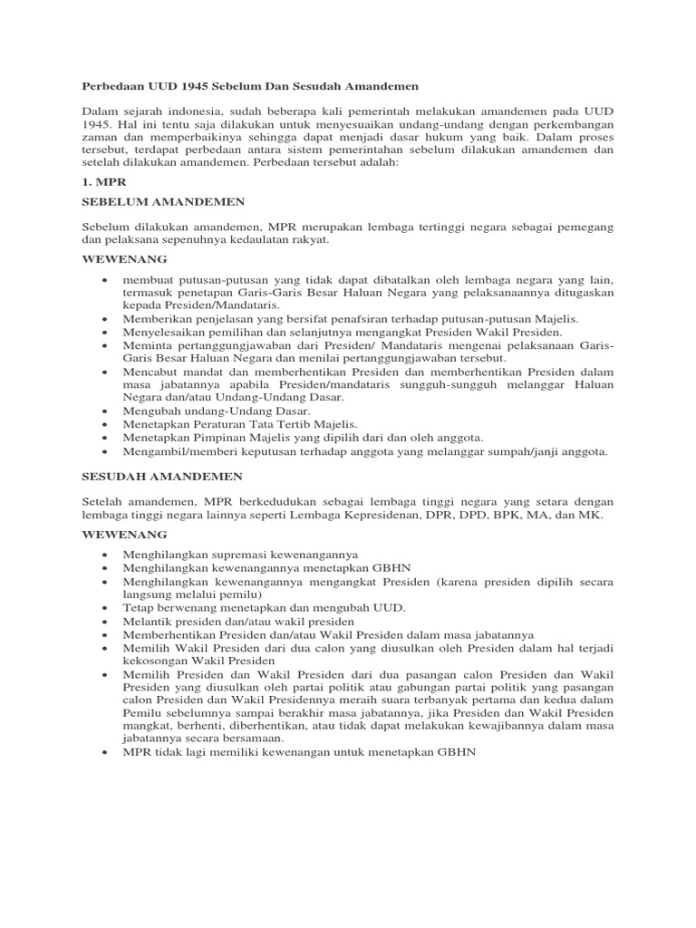 Perbedaan UUD 1945 Sebelum Dan Sesudah Amandemen …