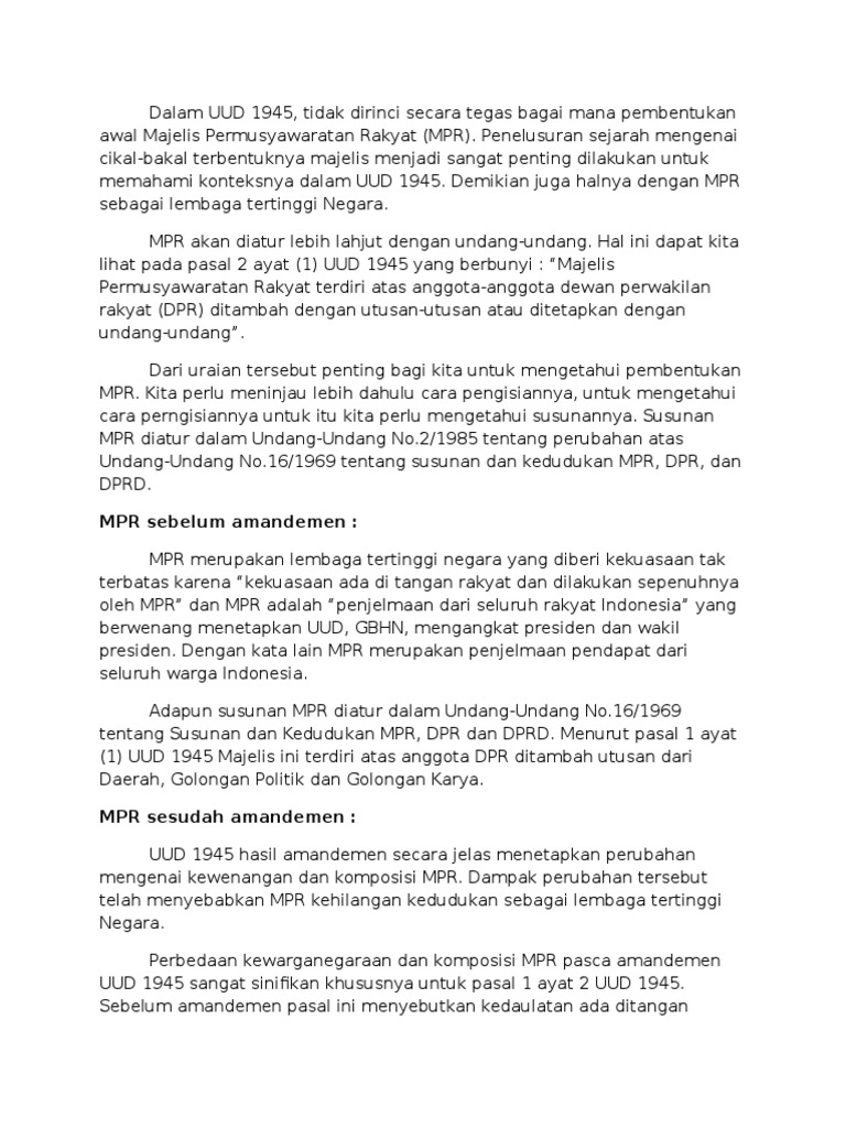 Jelaskan perbedaan wewenang MPR menurut UUD 1945 sebelum dan …