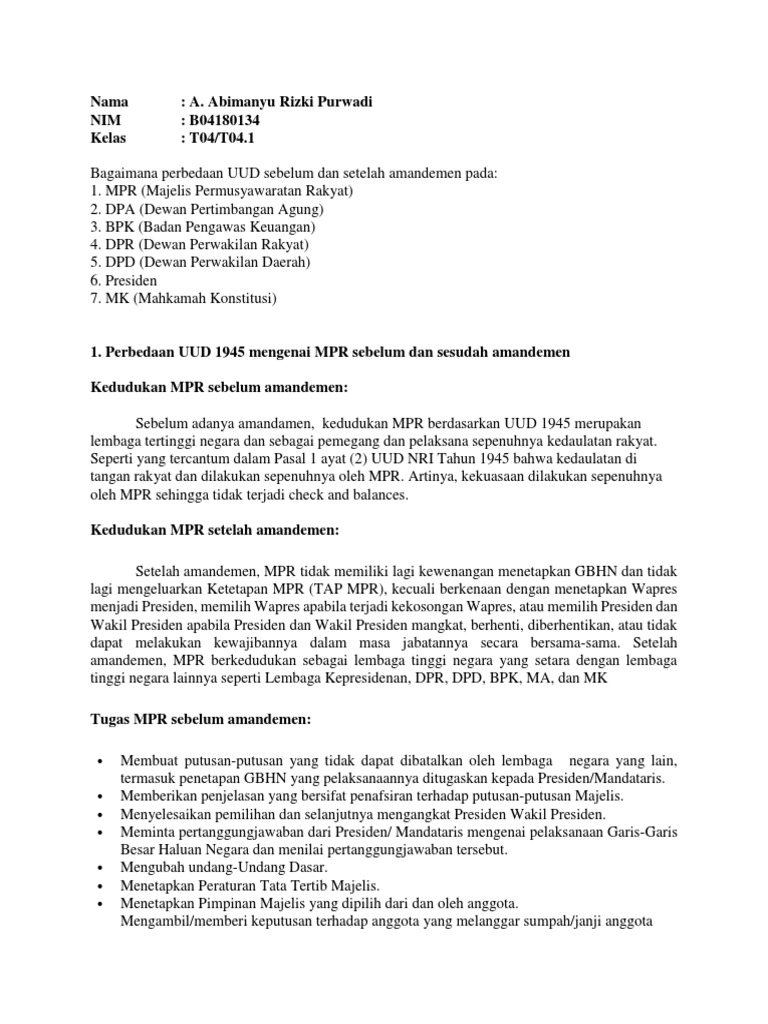 Pdf Uud 1945 Sebelum Dan Sesudah Amandemen - Contoh Makalah