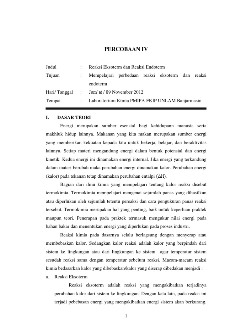 Reaksi Eksoterm dan Reaksi Endoterm (Laporan Praktikum) - [PDF Document]