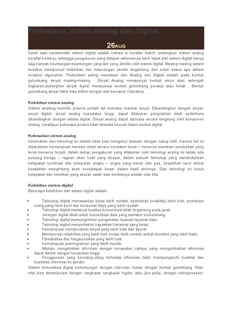 Perbedaan Sistem Digital Dan Sistem Analog | loistha aprilia …