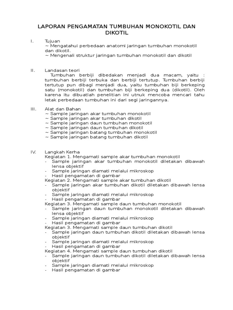 Laporan Pengamatan Tumbuhan Monokotil Dan Dikotil