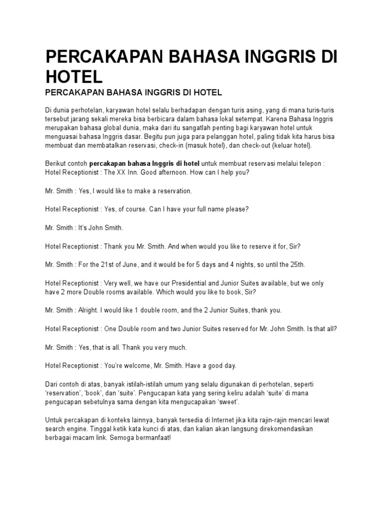 2 Contoh Percakapan Memesan Hotel via Telepon Dalam Bahasa Inggris …