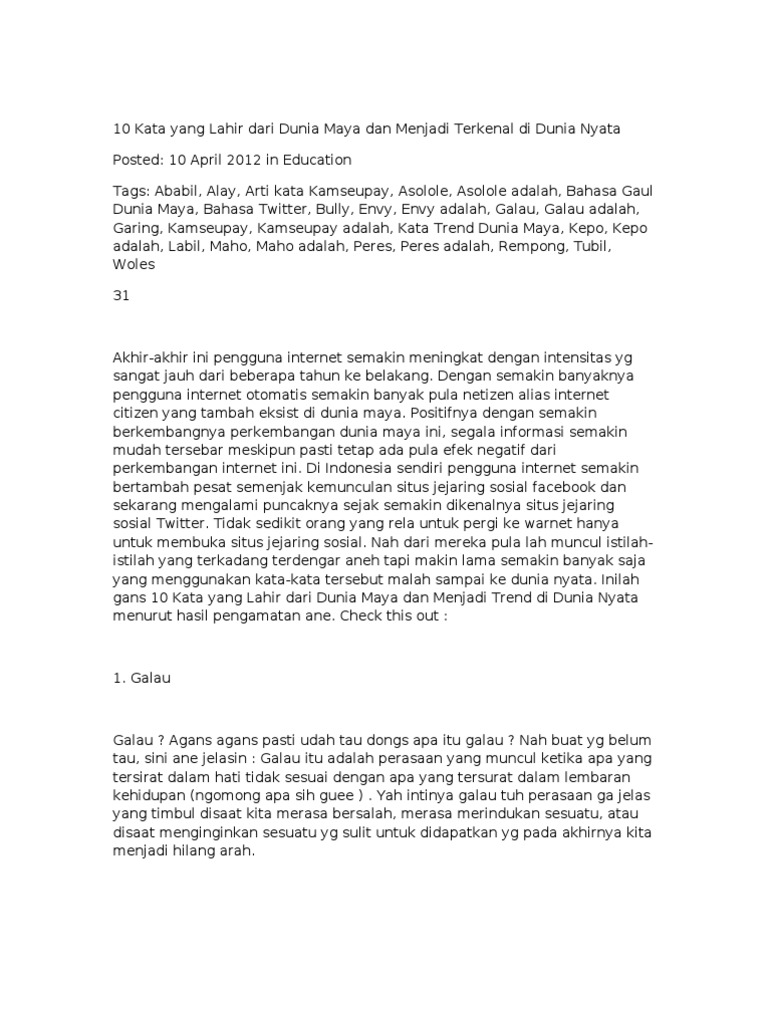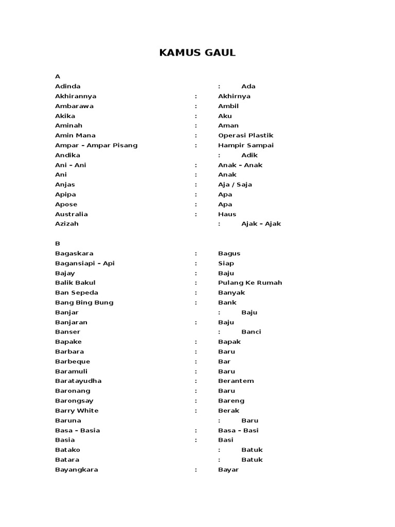 Kumpulan Kata Kata Gaul Alay dan Arti Kamus Gaul – MAJALAH KELUARGA