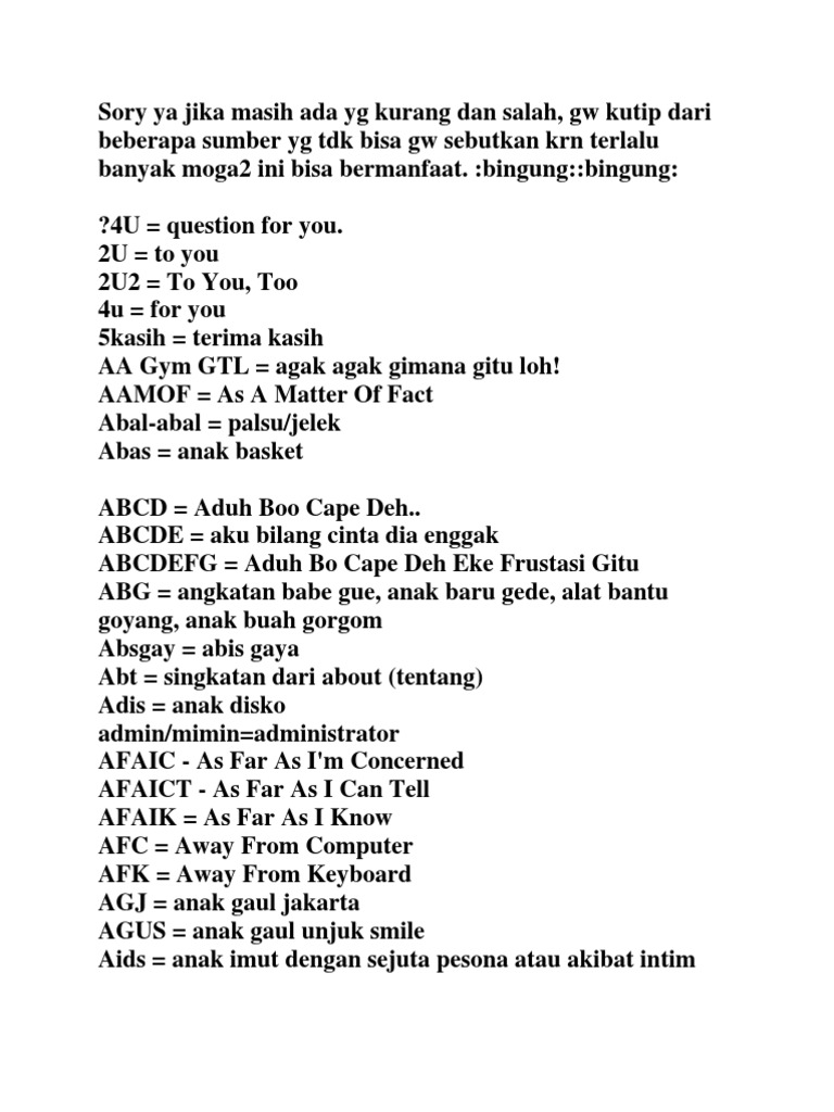 Kamus Bahasa Gaul: Daftar Kata Slang & Singkatan Inggris Beserta …