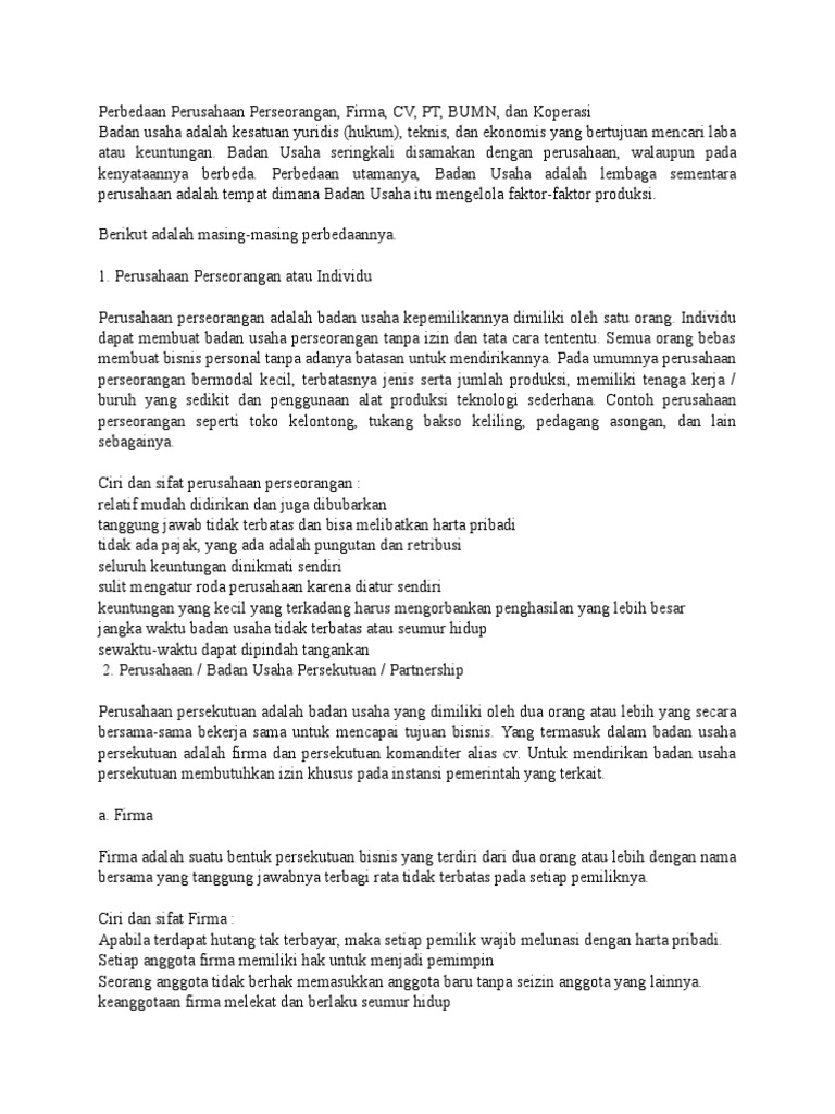 PERBEDAAN PERUSAHAAN, FIRMA, CV, PT, BUMN DAN KOPERASI - ppt download