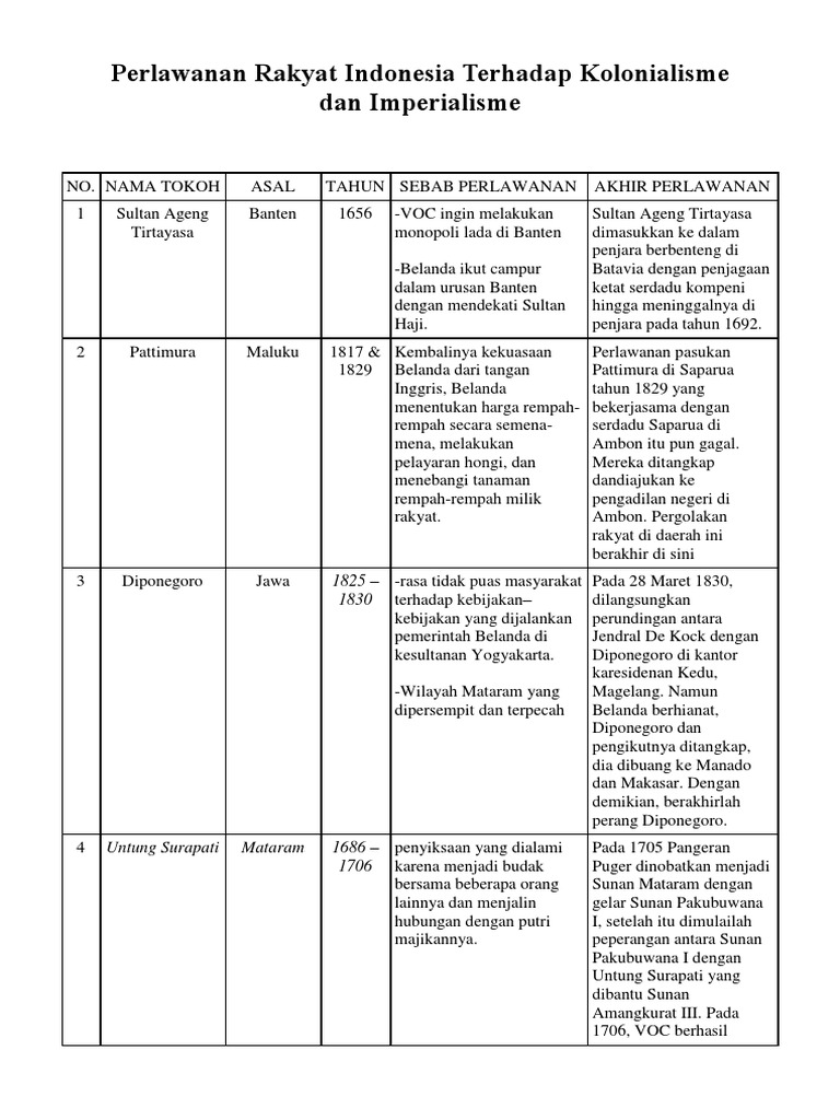 DOC) Perlawanan Rakyat Terhadap Kolonialisme dan Imperialisme di Indonesia | Aurel Pricilia - Academia.edu