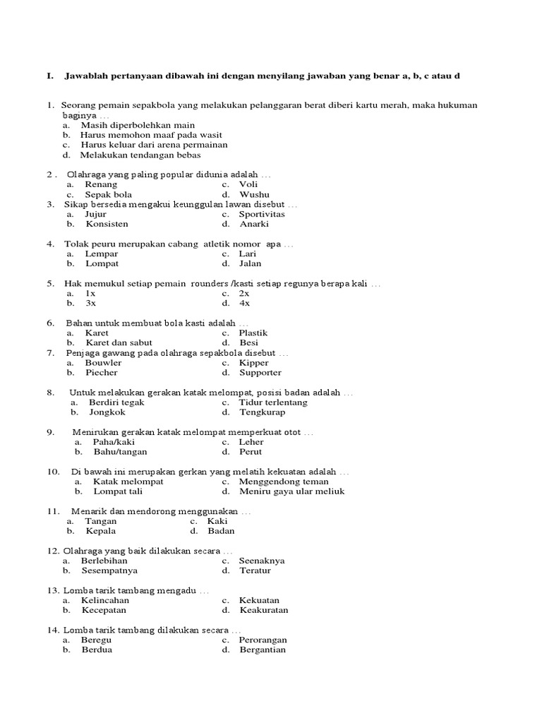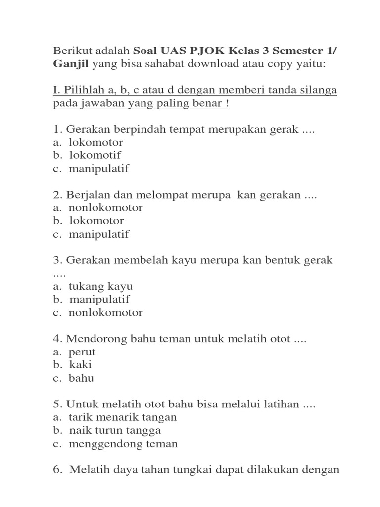 Latihan Soal PTS PJOK Kelas 6 Semester 1 Terbaru Plus Kunci …