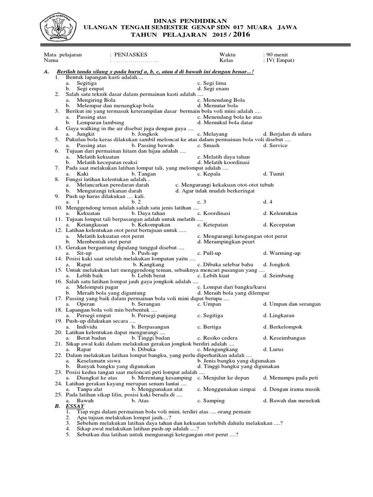 Ulangan penjas kelas 4 semester 2 www.mautidakmauharusmau.blogspot.com