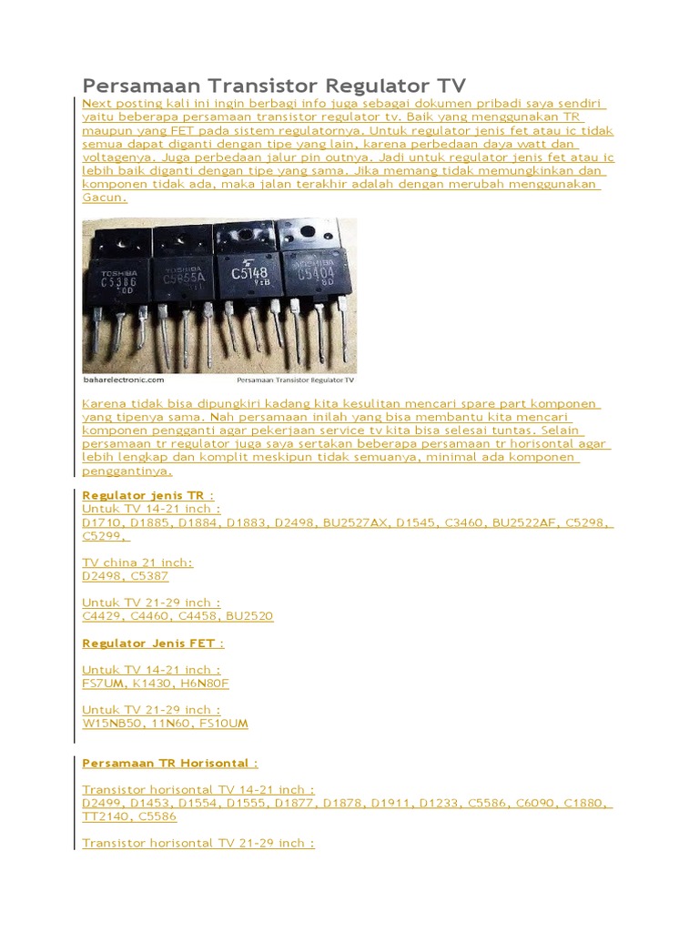 Persamaan transistor regulator tv polytron lengkap - solderku …