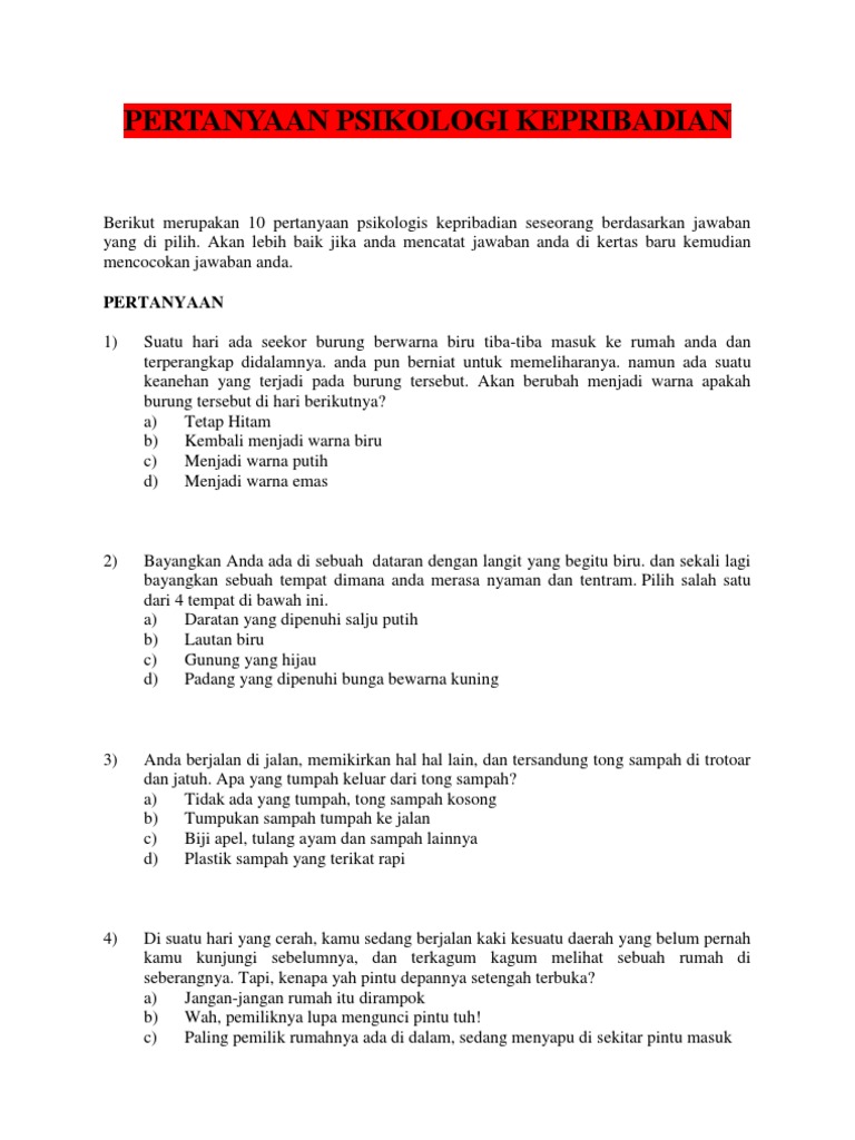 Tes Psikologi Kepribadian: Permainan Pikiran dan Pertanyaan Oleh …