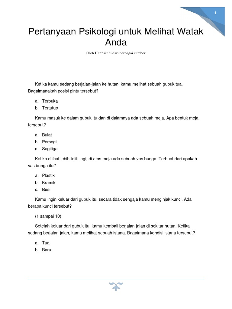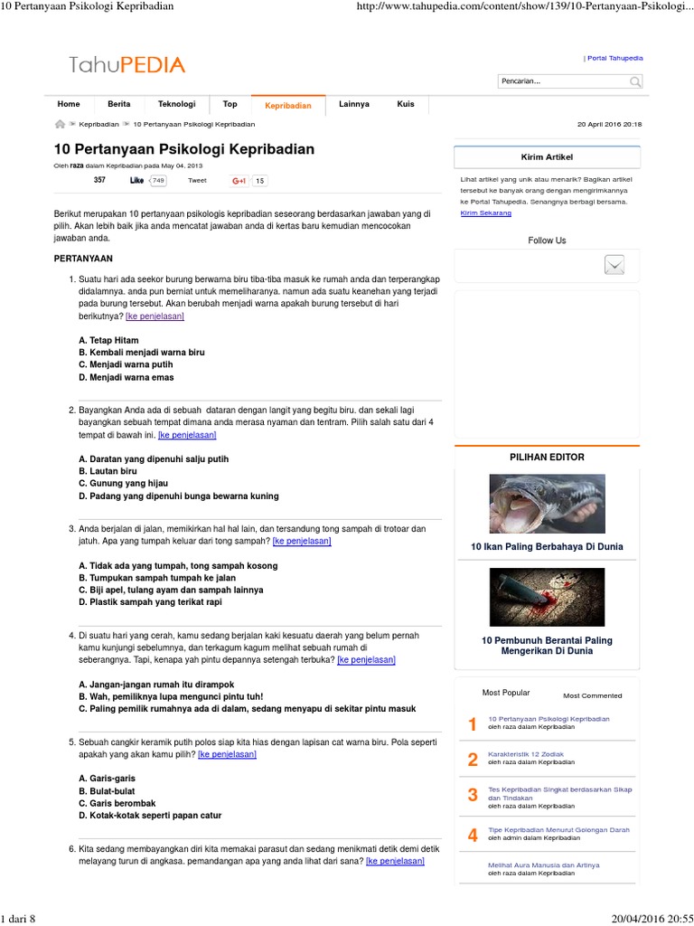10 Pertanyaan Psikologi Kepribadian - Page 6 | KASKUS