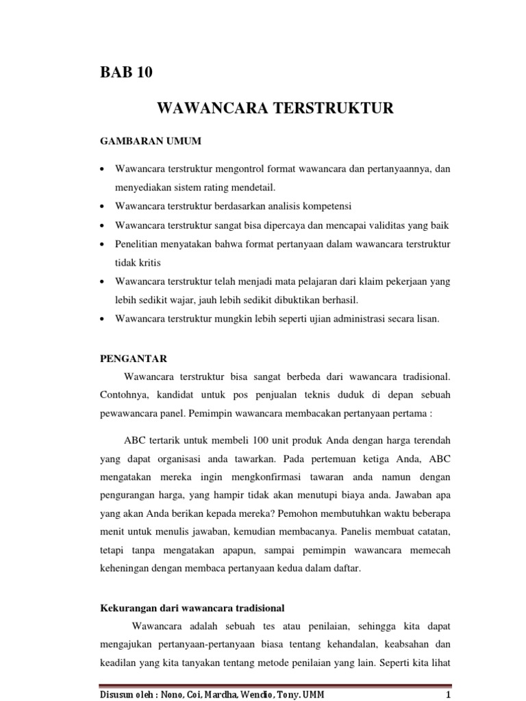 Wawancara Terstruktur Dan Metode Asesmen Khusus dalam psikologi