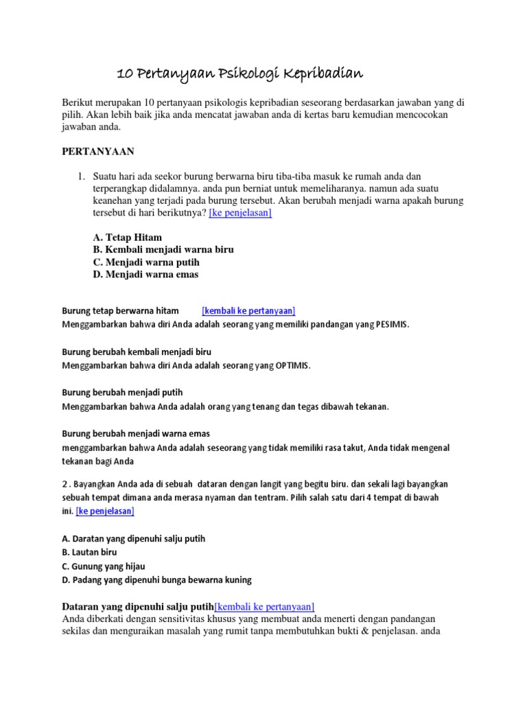 Pernahkah Anda Di Tanya Dengan 10 Pertanyaan Psikologi Kepribadian …