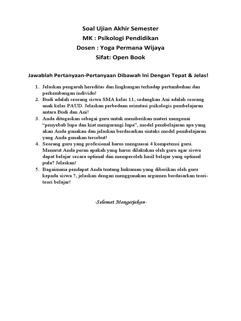 Soal Ujian Akhir Semester Psikologi Pendidikan