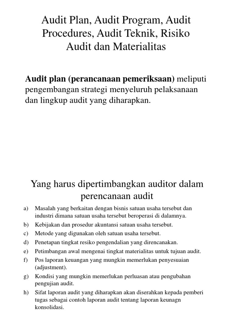 AUDIT PLAN (Perencanaan Pemeriksaan) - ppt download
