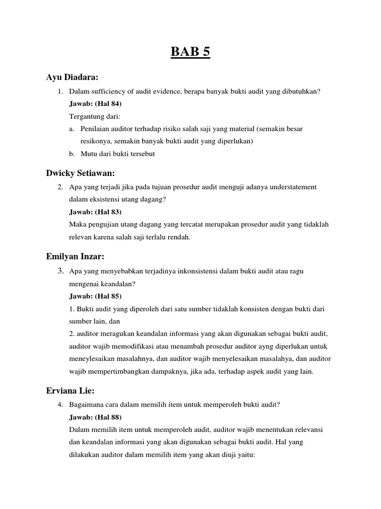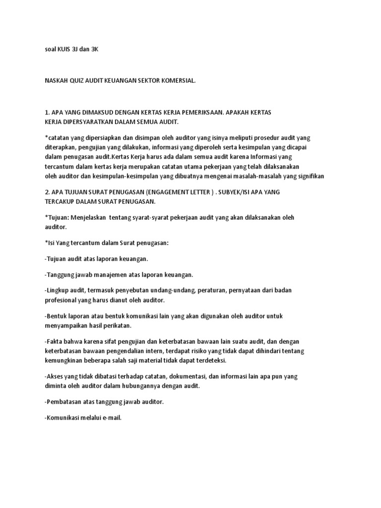 Pertanyaan Tentang Kertas Kerja Audit Dan Program Audit