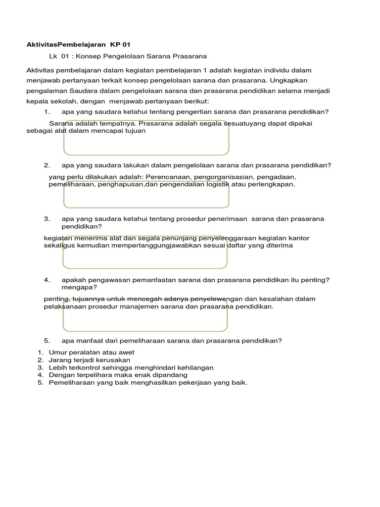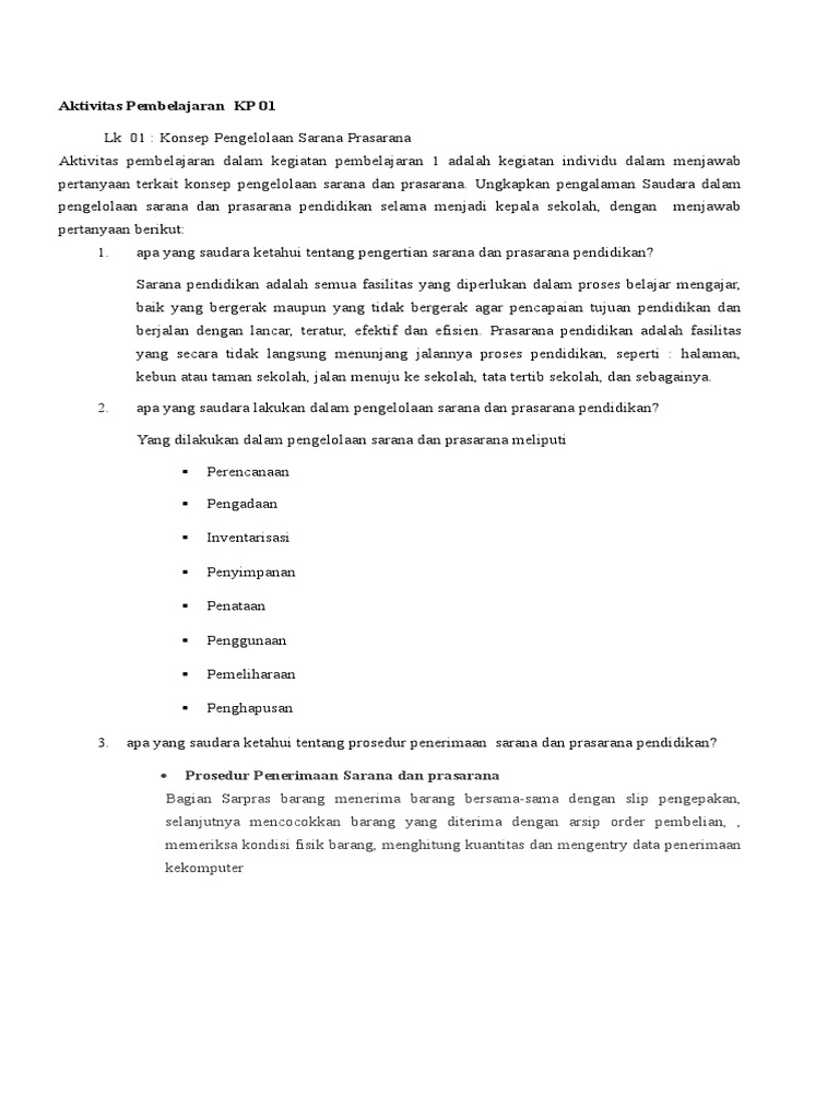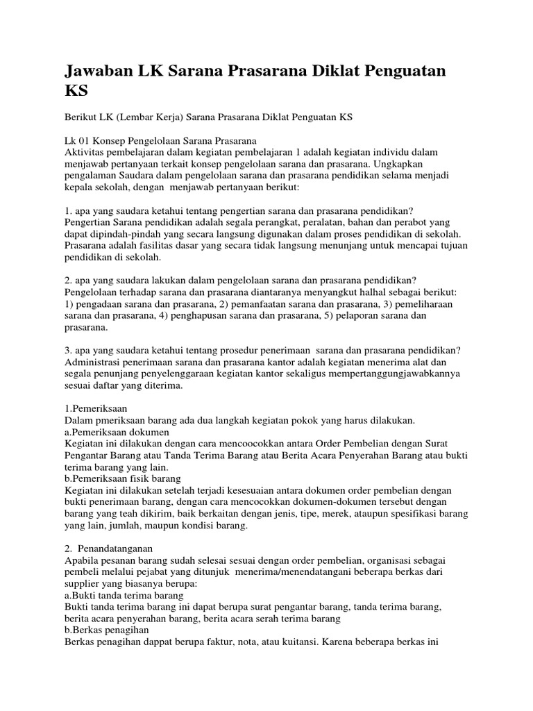 Jawaban LK Sarana Prasarana Diklat Penguatan KS