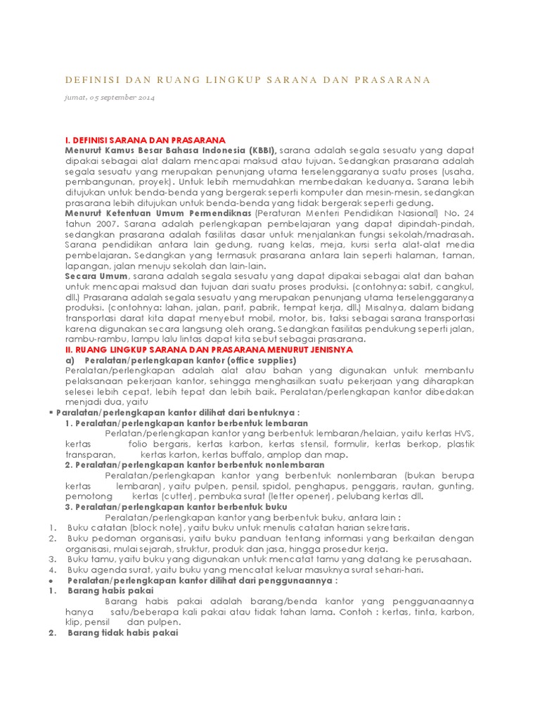 Definisi Dan Ruang Lingkup Sarana Dan Prasarana