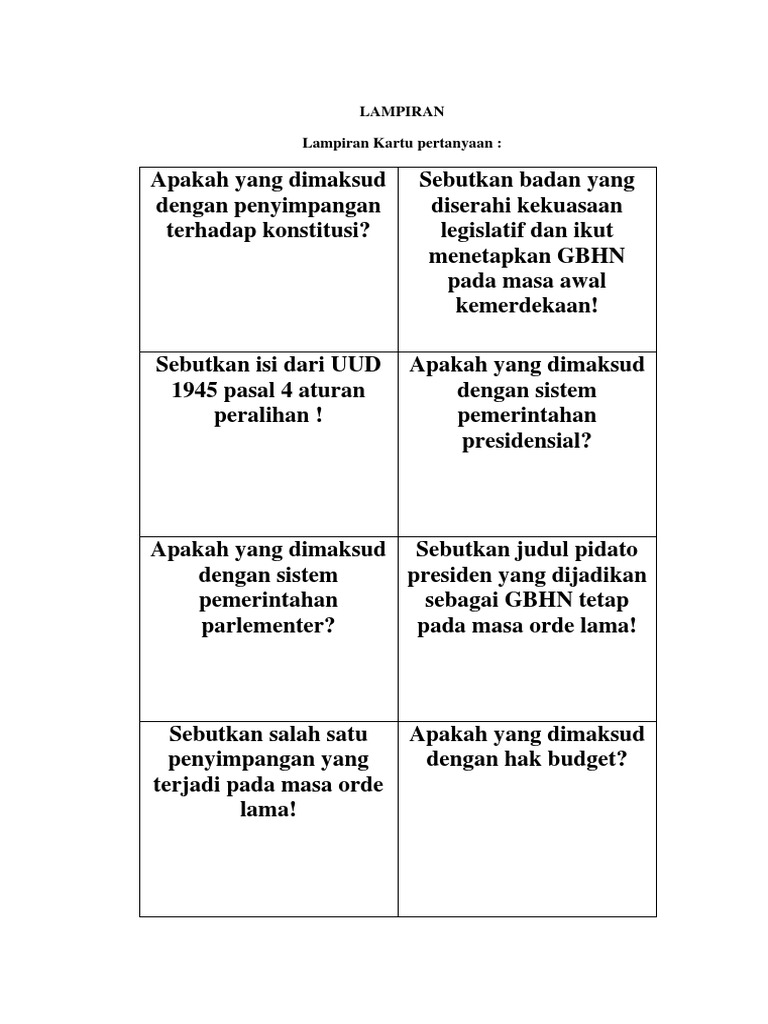Lampiran Lampiran Kartu pertanyaan