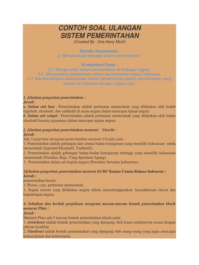 50 Soal Sejarah Sistem Pemerintahan Negara Indonesia, Jawaban …