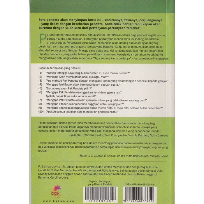 BUKU 10 Pertanyaan Yang Ditakuti Pendeta - F Belton Joyner di …