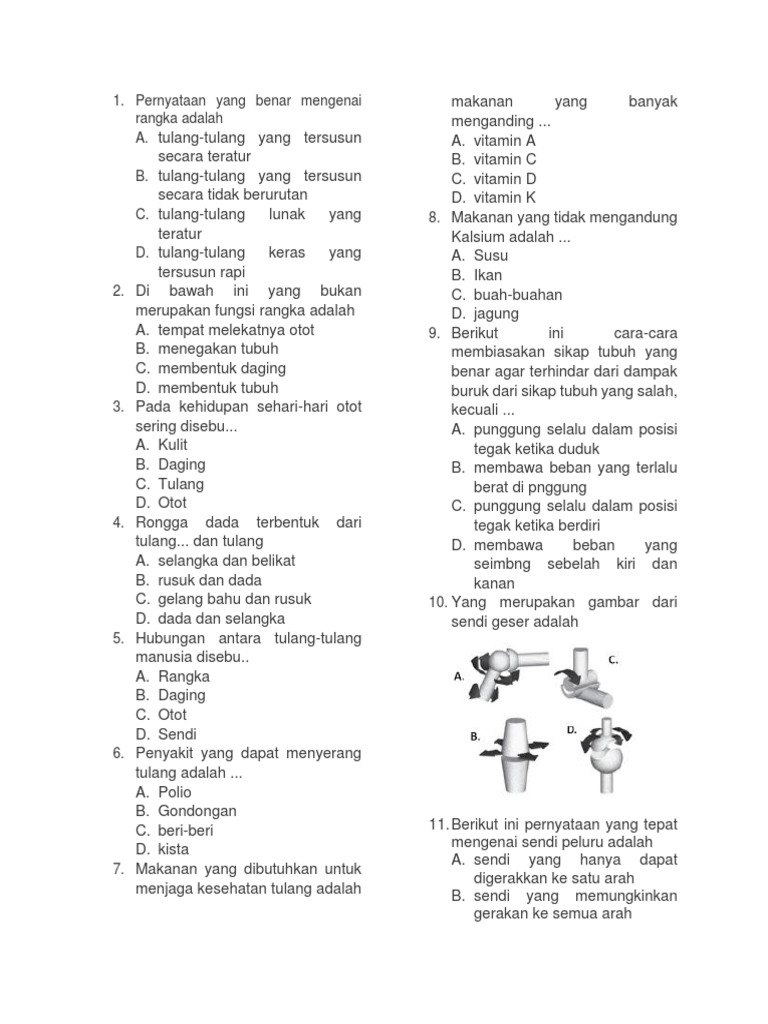 1. Pernyataan yang benar mengenai rangka adalah A