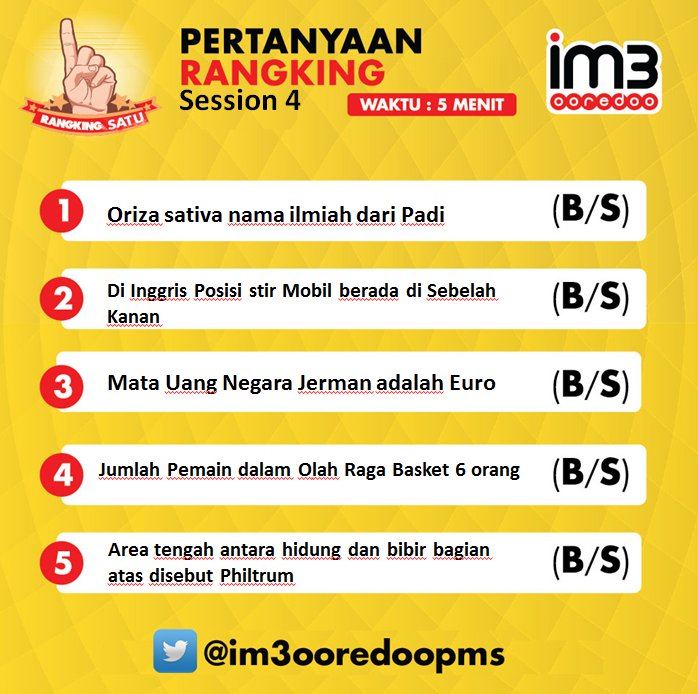 Dongan IM3 Siantar Sidempuan on Twitter: “SESSION 4 #Kuis #Rangking1 jawab pertanyaan Benar (B) atau Salah (S).… "