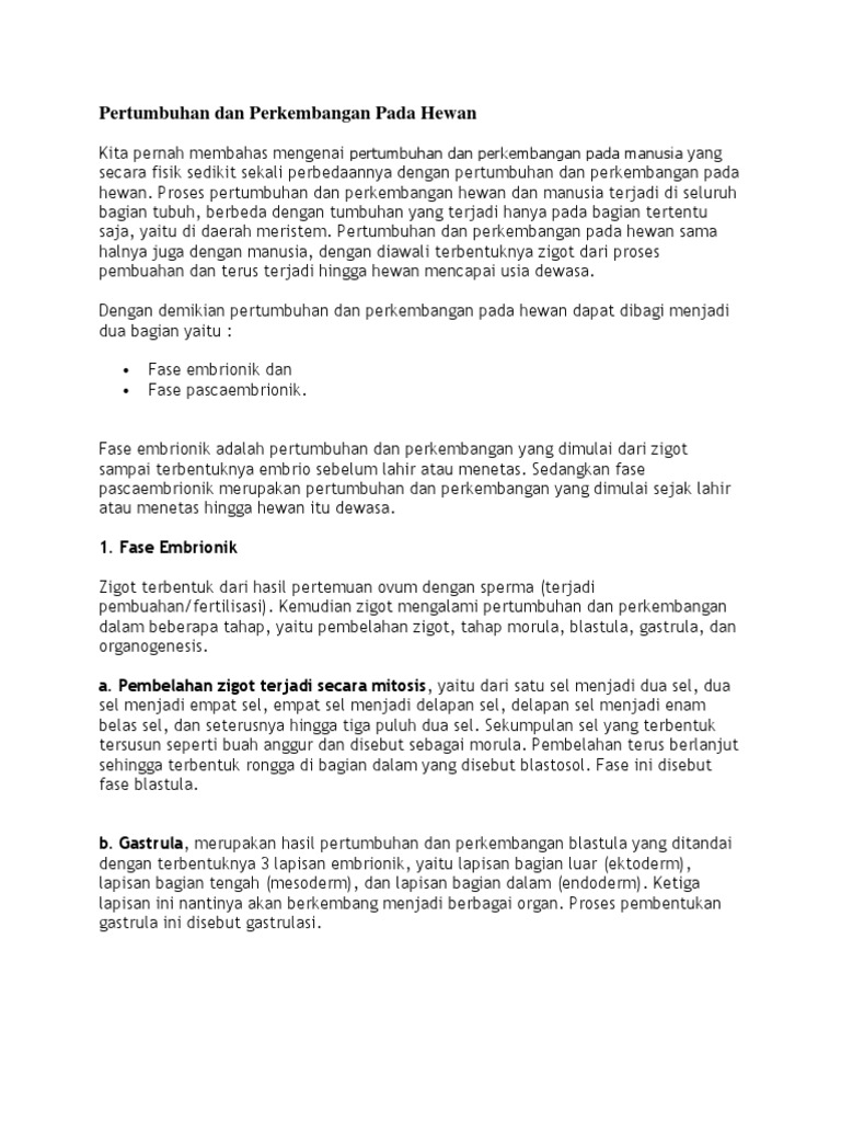 Tahap Pertumbuhan dan Perkembangan Pada Hewan Terlengkap …